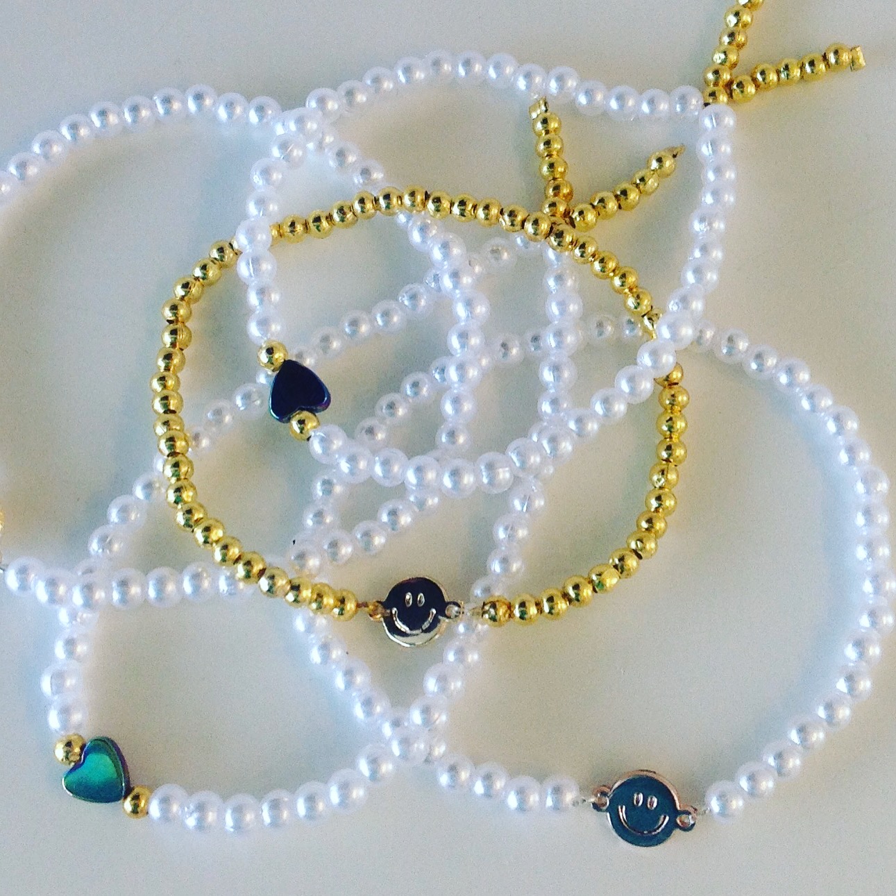 Perlenarmbänder mit Smiley in gold oder roségold .