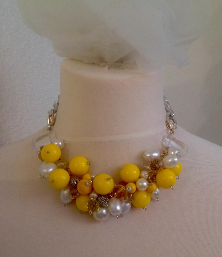 Kette aus gelben,goldenen,weißen und silbernen Perlen