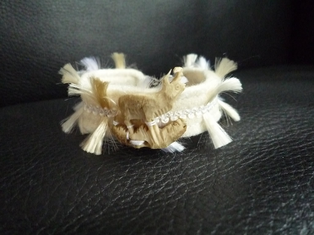 Armband in wollweiß mit Beinhirsch