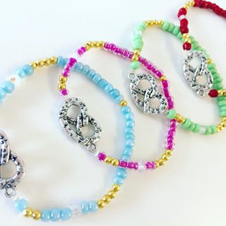 Perlenarmband mit silberner Brezel in verschiedenen Farben .