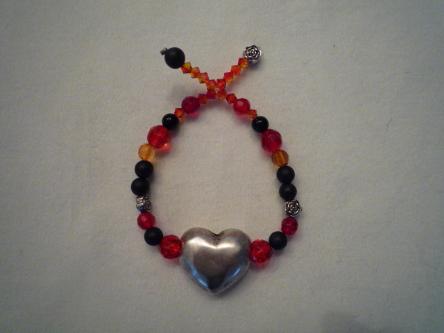 Armband mit silberfarbenem Herz und Glasperlen.