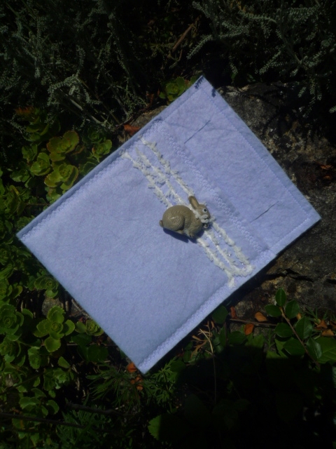 Dirndltasche in flieder mit Glitzerborte und Hasen verziert.Dieses handgearbeitete Unikat läßt sich in die Dirndlschürze fädeln.