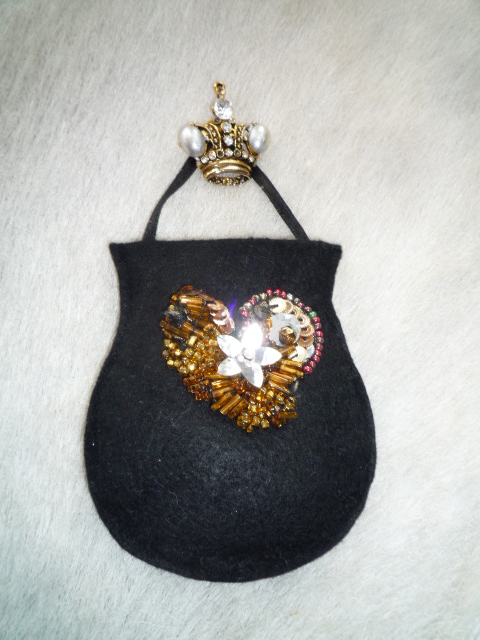 Kleines Täschchen zum Anstecken an die Schürze .Dieses Unikat wurde in liebevoller Handarbeit aus Filz gefertigt und mit einem handbesticktem Herz verziert.Dieses Schmuckstück eignet sich als Geldbörse auf der Wiesn!