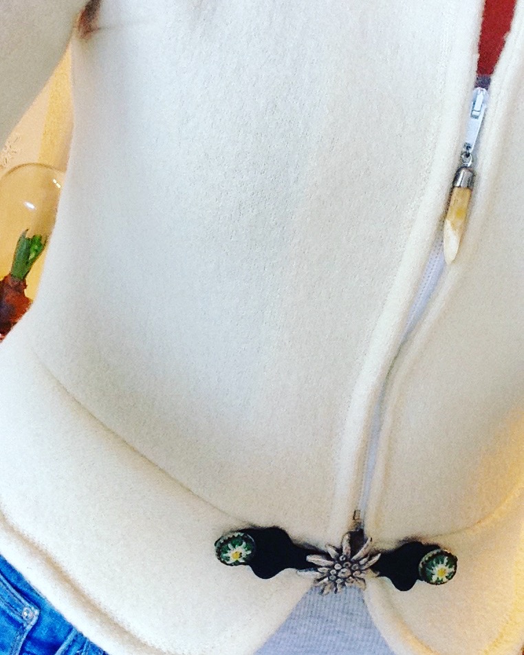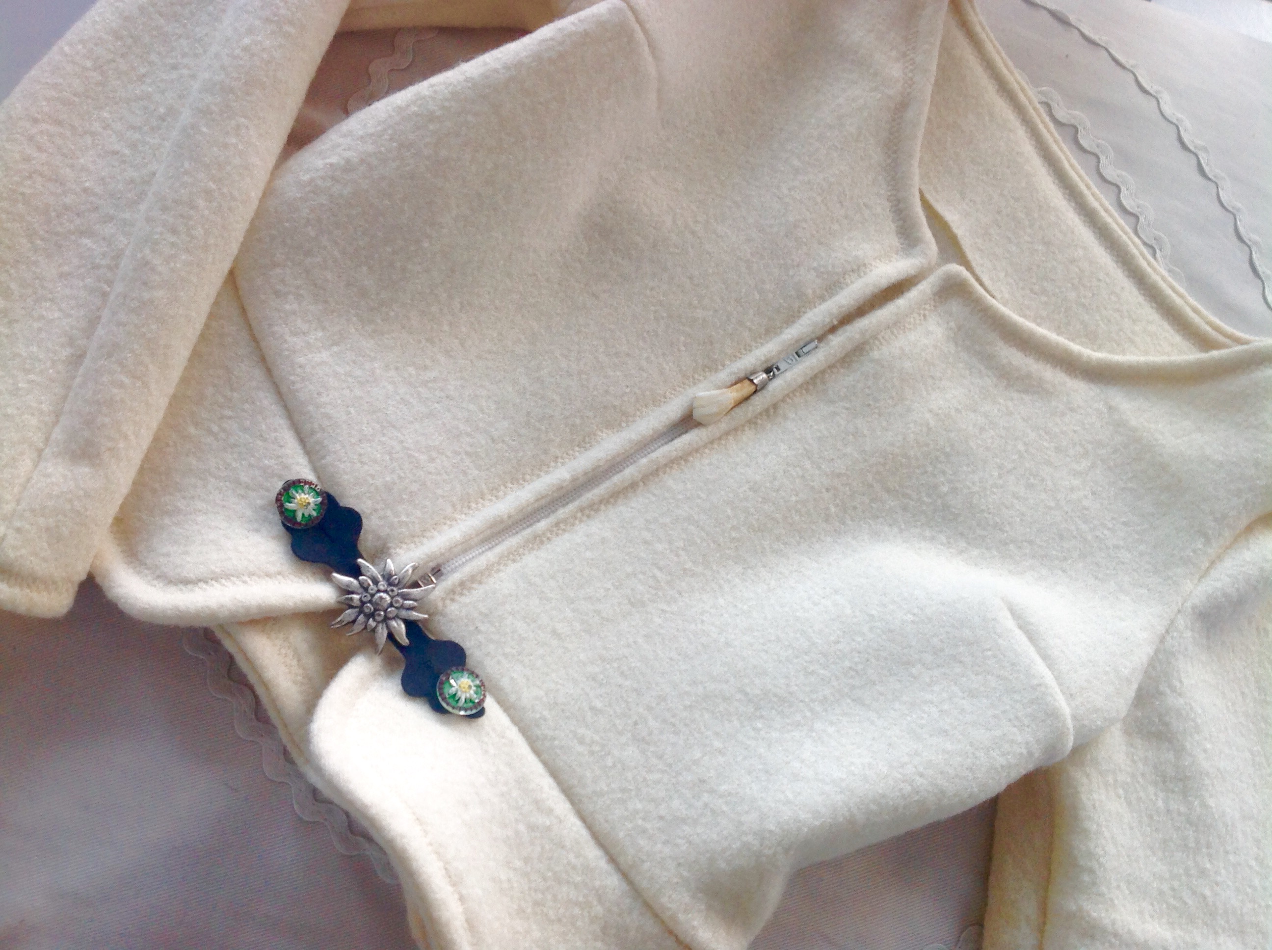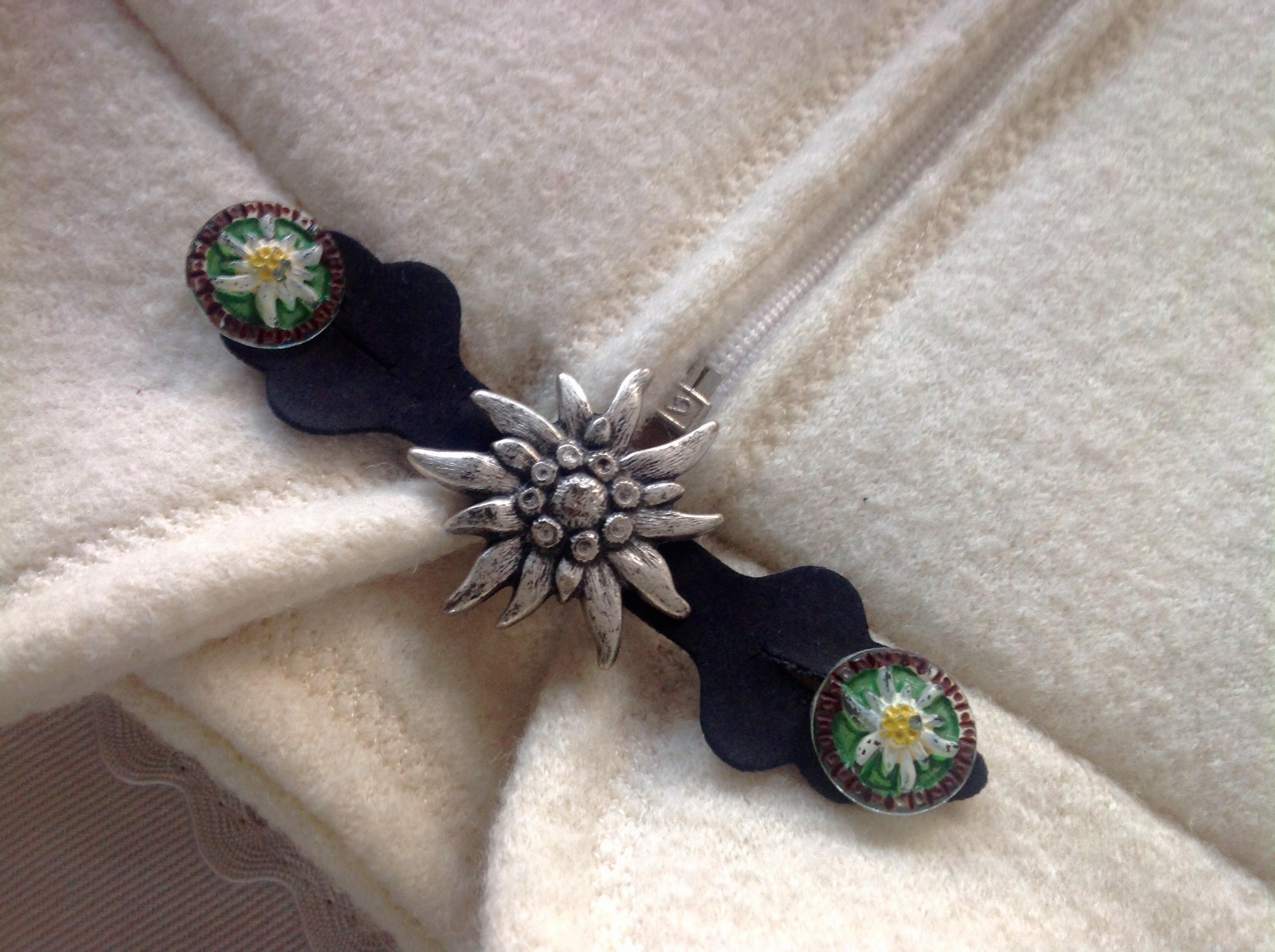 Kurze Walkjacke in ecru mit Edelweissverschluß