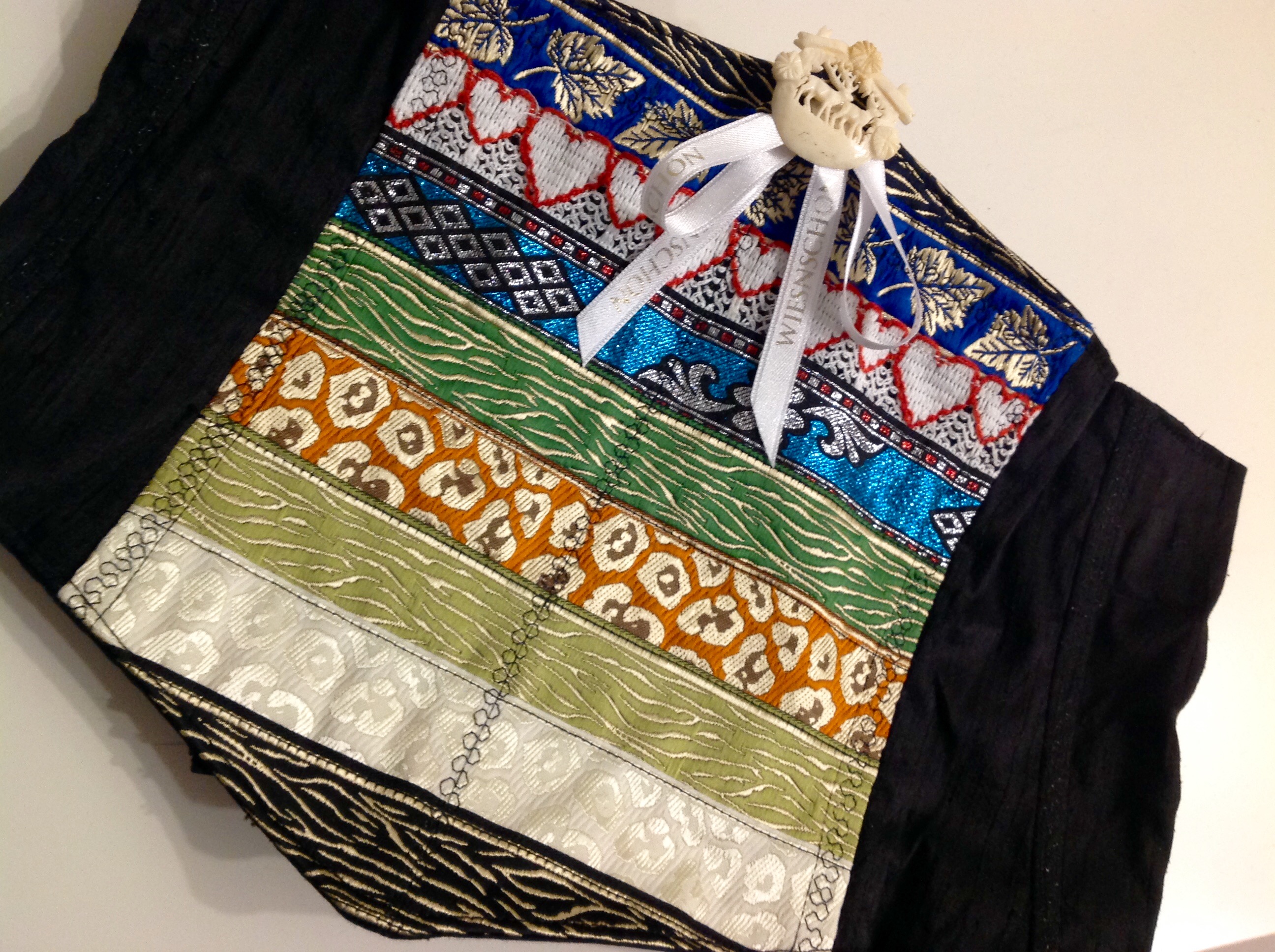 Trachtenmieder gearbeitet mit gepatschten Bändern und schwarzer Seide