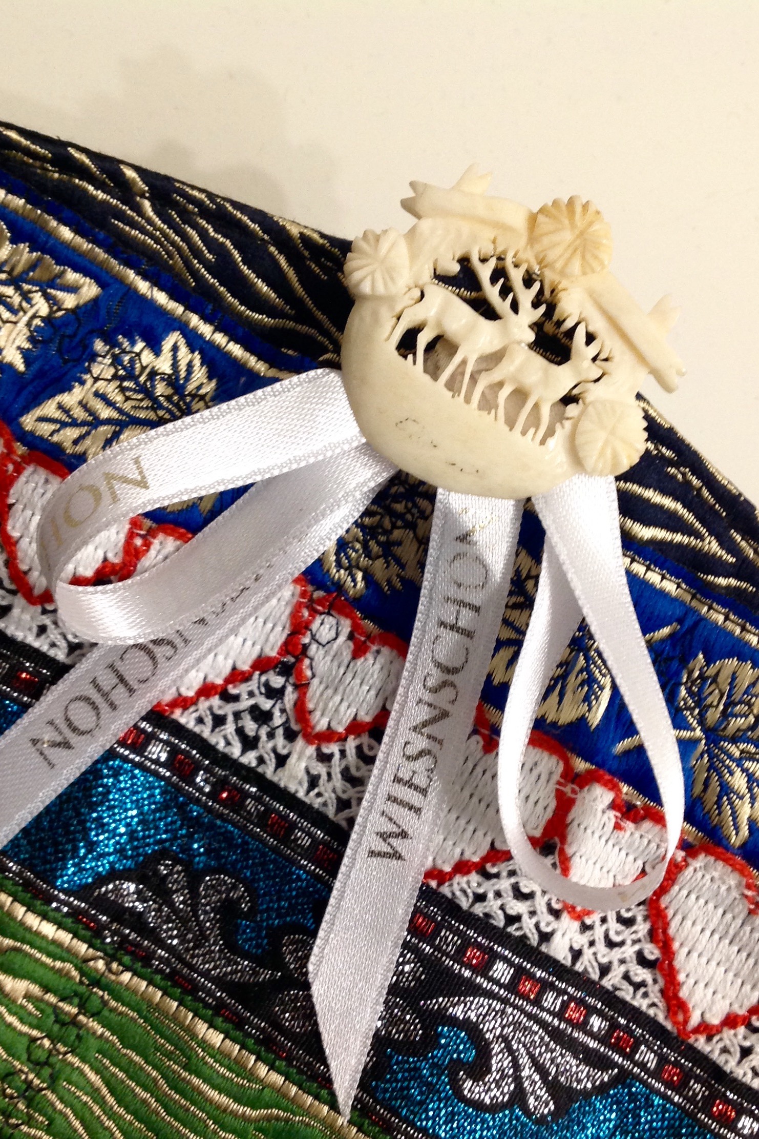 geziert von einer antiken,handgeschnitzten Trachtenbrosche