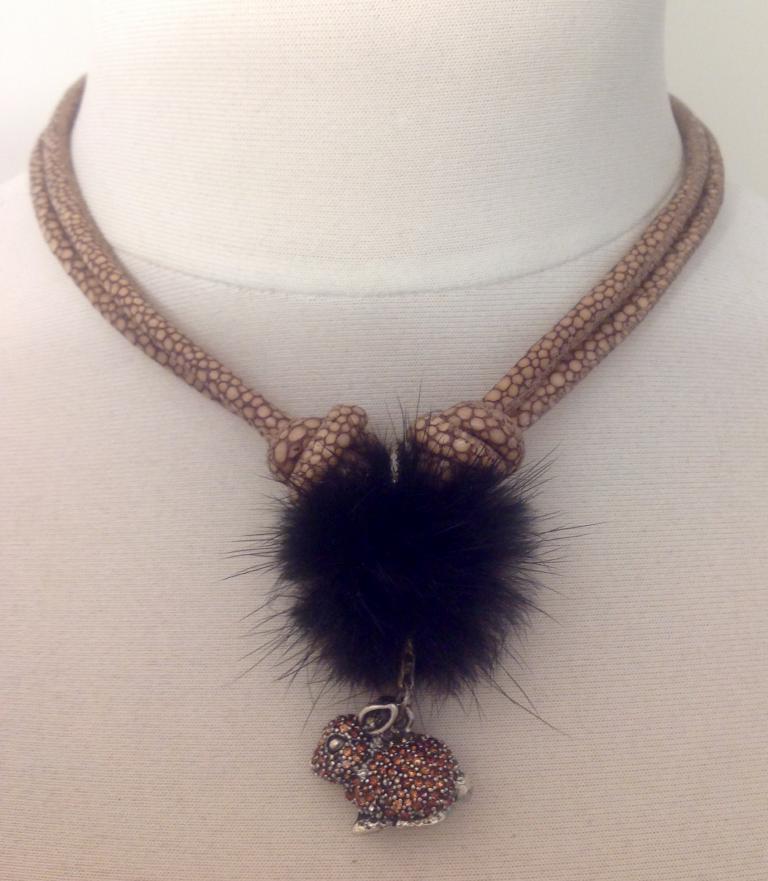 Lederkette in Rochenprägung mit Straßhase und Nerz