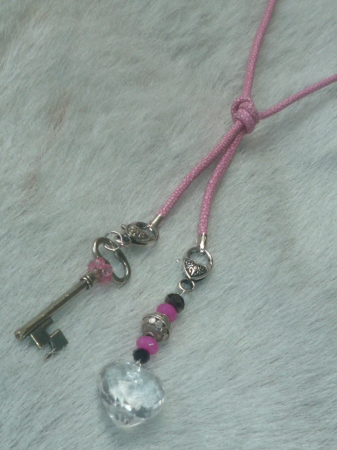 Lederkette in rose mit Rochenprägung.Dieses Schmuckstück besitzt zwei Wechselanhänger :einen Schlüssel und ein Herz