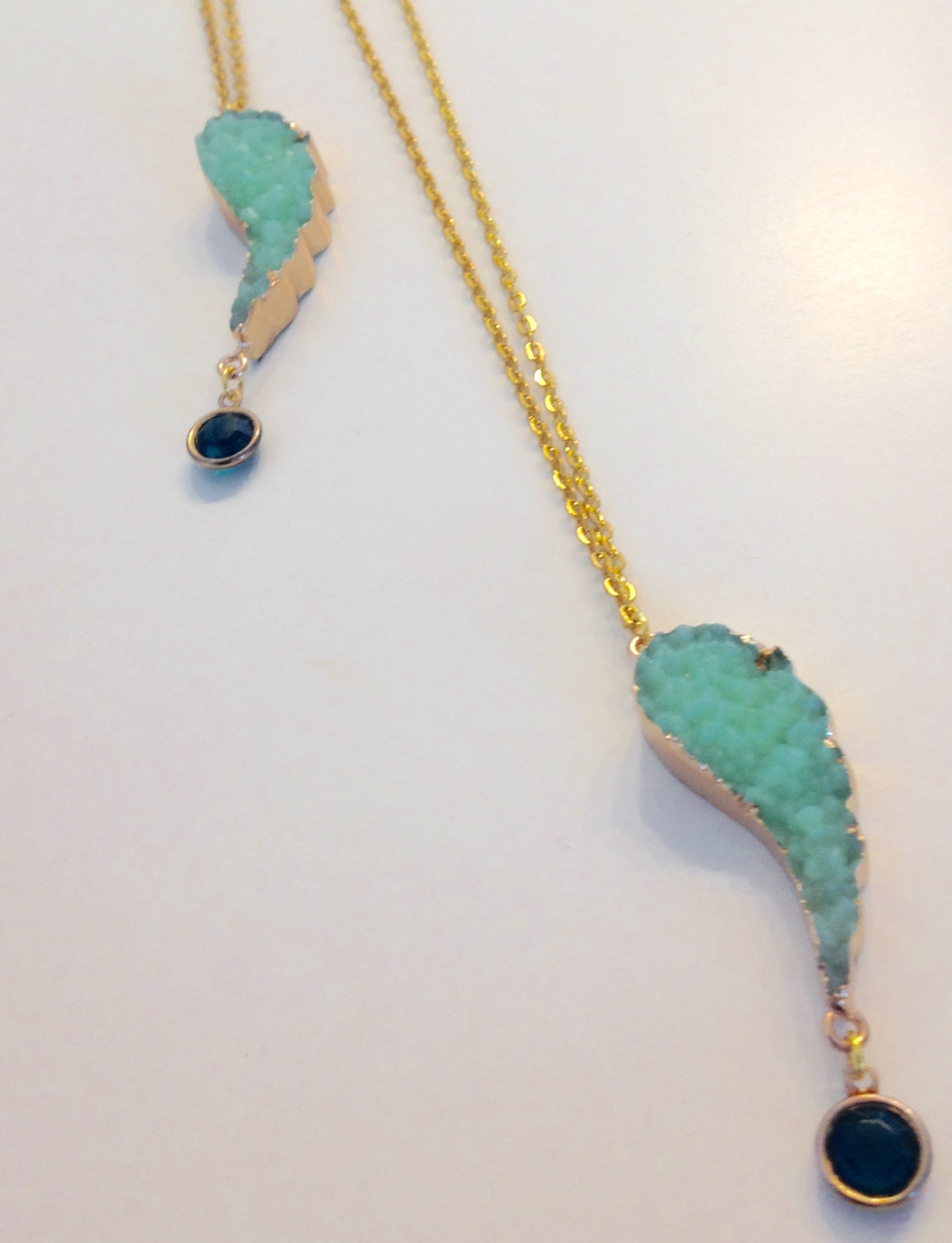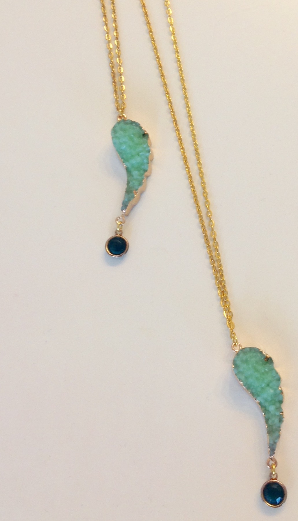 Lange oder kurze Kette in gold mit grünem Engelsflügel zum zusammemTragen oder alleine Tragen je nach Lust & Laune .Preis je Kette 25€