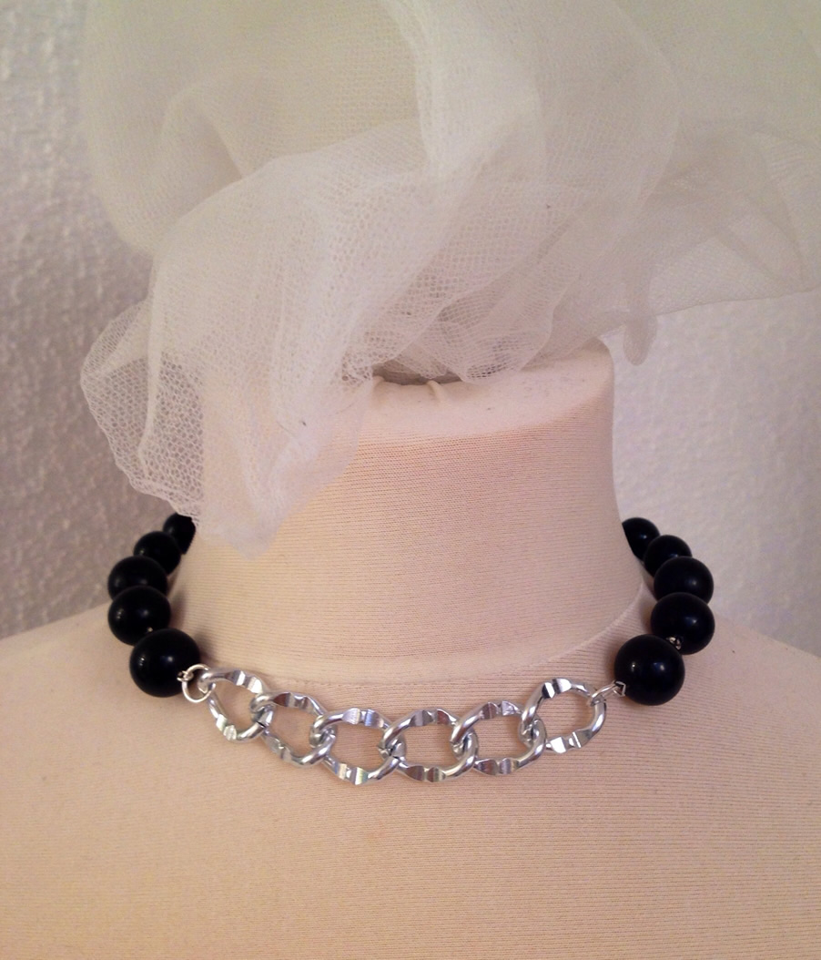 Bloggerkette aus schwarzen Perlen und silbernen Gliedern