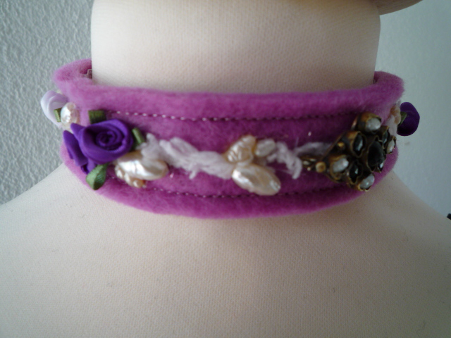 Beerenfarbenes Kropfband mit Amulett und Satinrosen