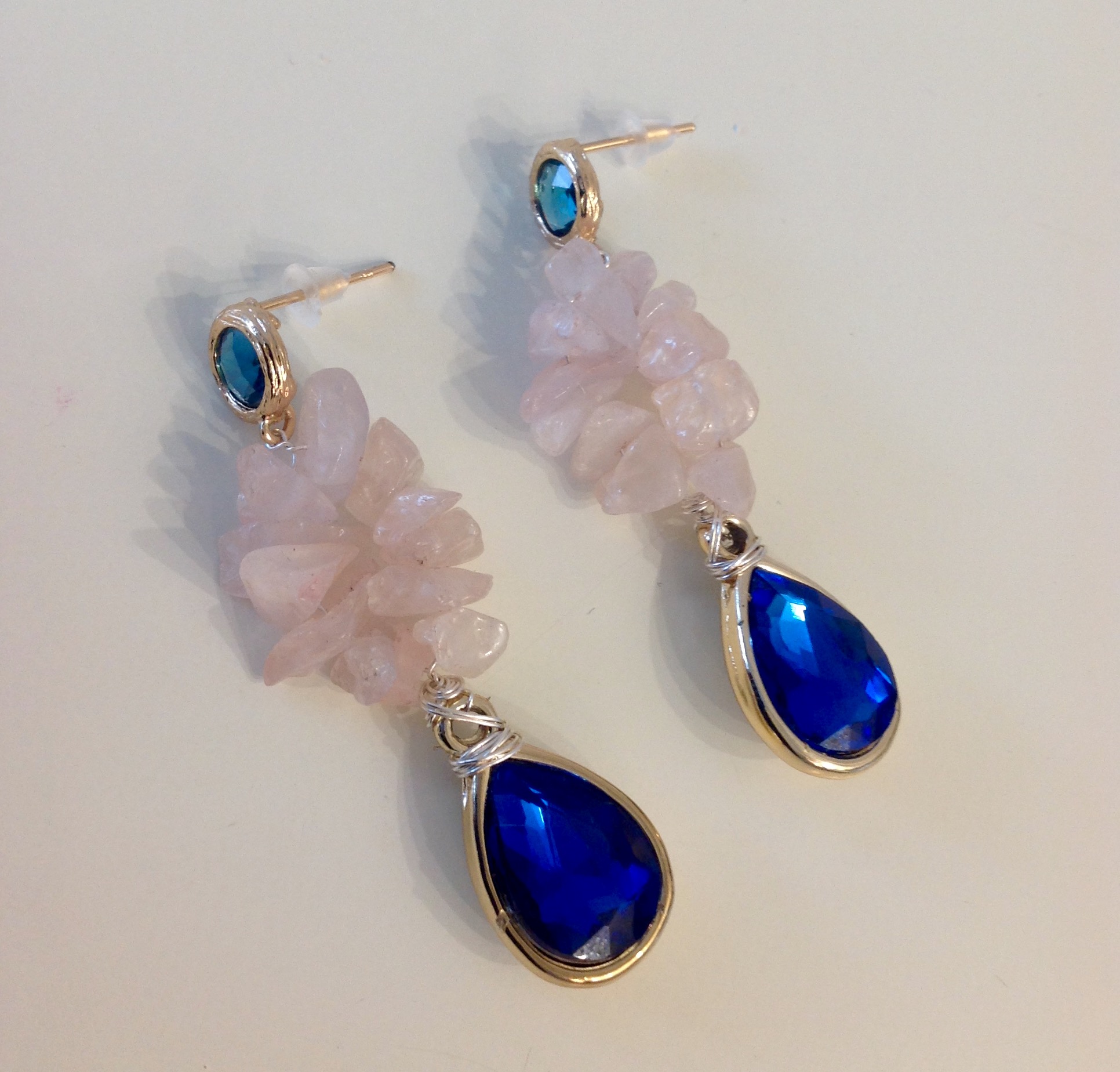 Ohrringe in Saphirblau mit Rosenquarzsplitter