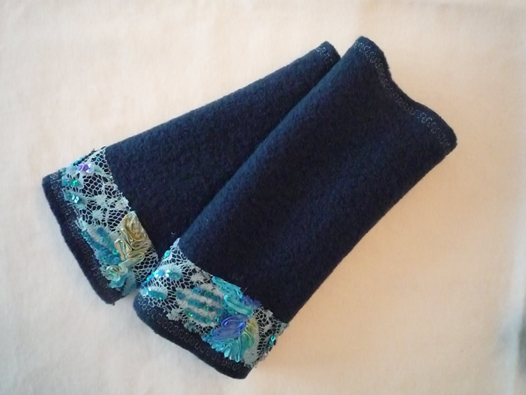 Pulswärmer in petrol mit Paillettenspitze.