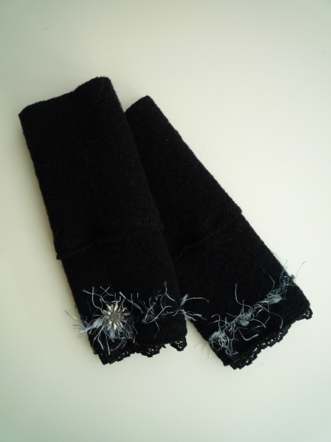Schwarze Stulpen mit schwarzer Spitze und silbernem Edelweiß