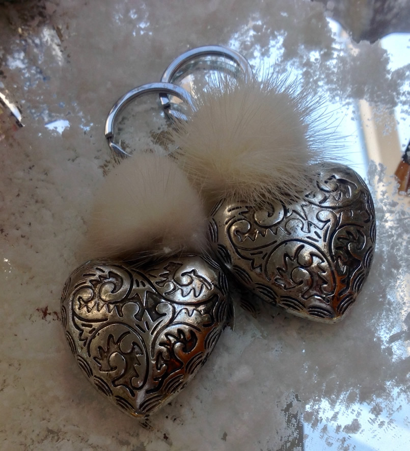 Schlüsselanhänger mit weißem Nerz &Trachtenherz
